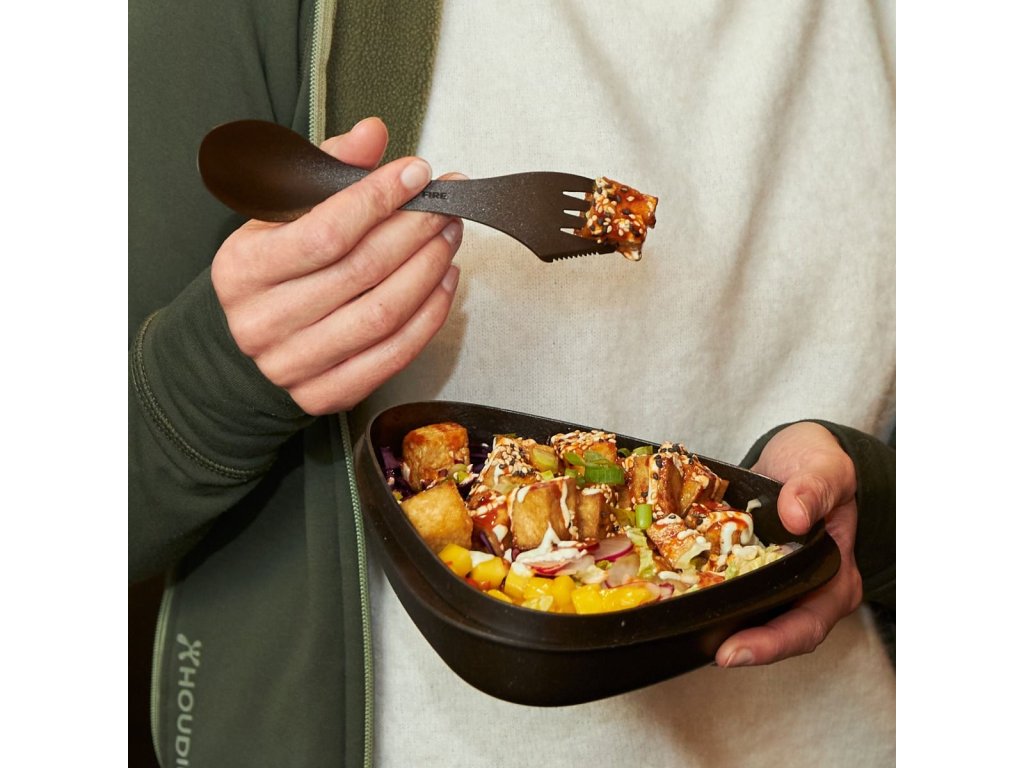Spork: kombinace lžičky, vidličky a nože. Naše kombinace lžičky, vidličky a nože přináší trochu civilizace do divočiny a trochu divočiny do civilizace. Vytvořeno speciálně pro společnost Light My Fire skandinávským návrhářem Joachimem Nordwallem. Spork je úžasná pomůcka – vejde se do batohu, kapsy, do piknikového koše, kabelky nebo aktovky.